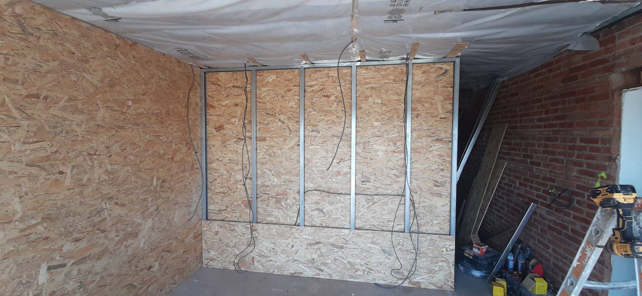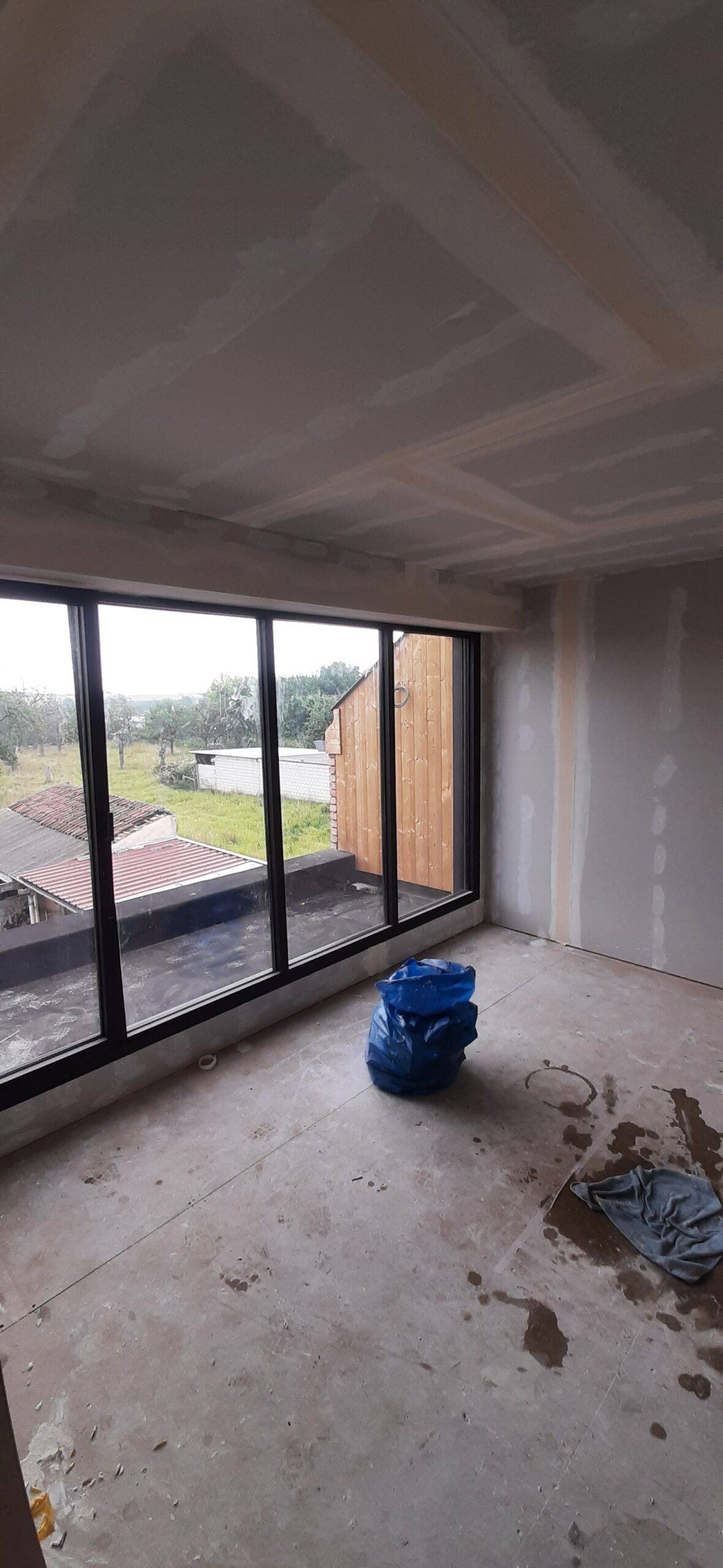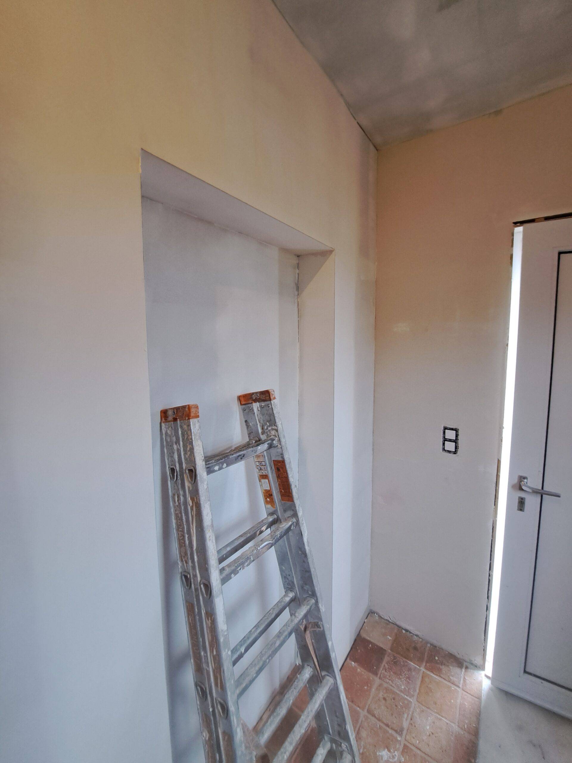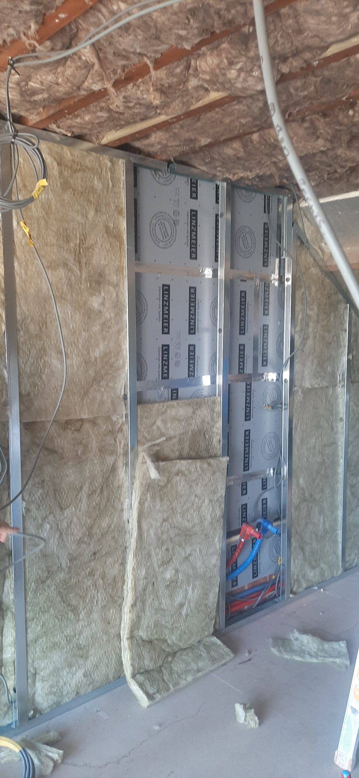 We hebben zolder en verdiep geïsoleerd , met dan nog scheidingswanden , voorzetwanden en gyprocplafonds. En in een latere fase hebben we dan ook de kinderkamer gyprocplafond geplaatst en muren uit gefinisht . En dan nog is een 3de fase hebben we onder de wc en gang en een beetje in de living nog gyproc geplaatst en muren uit gefinisht.