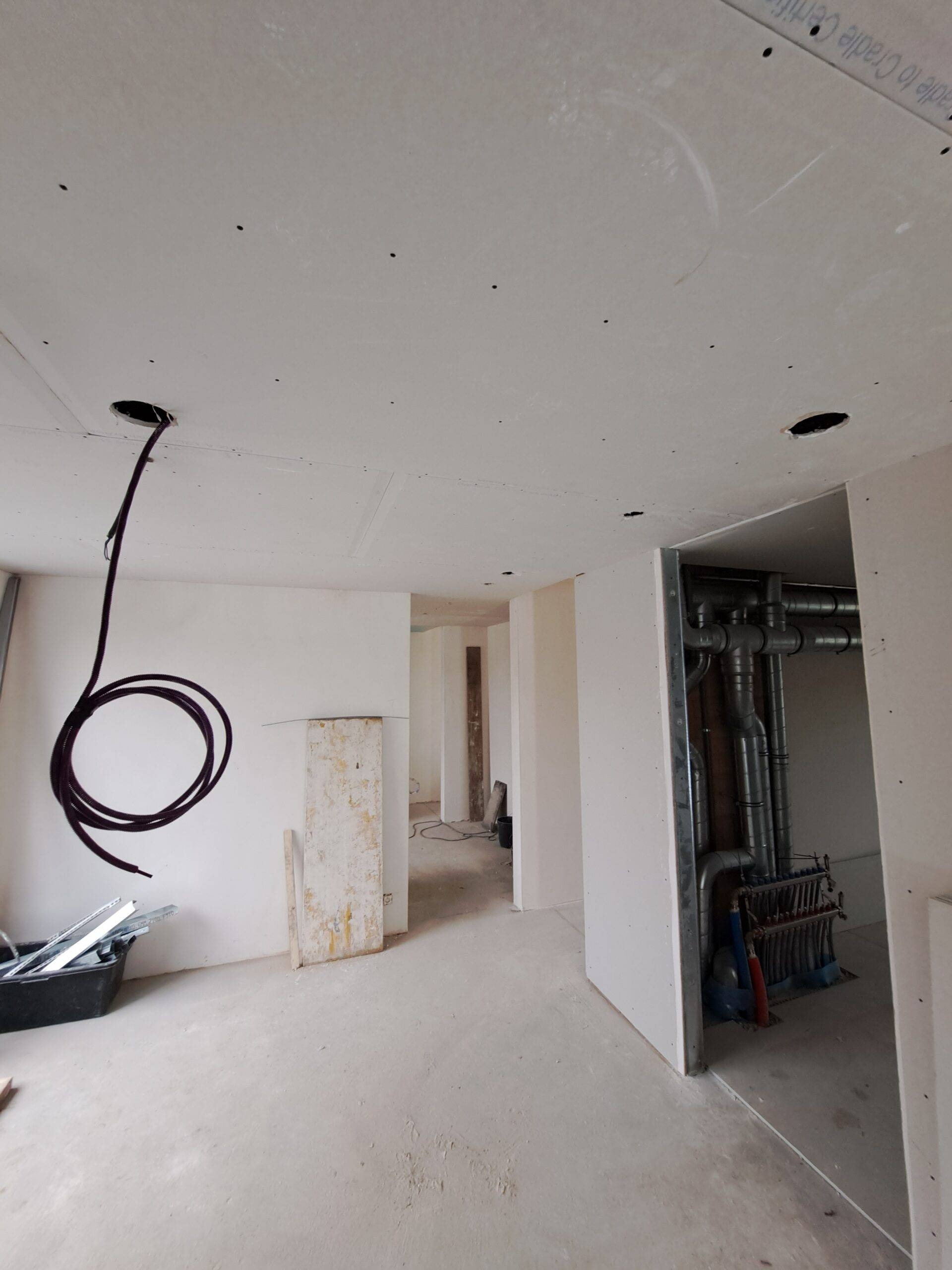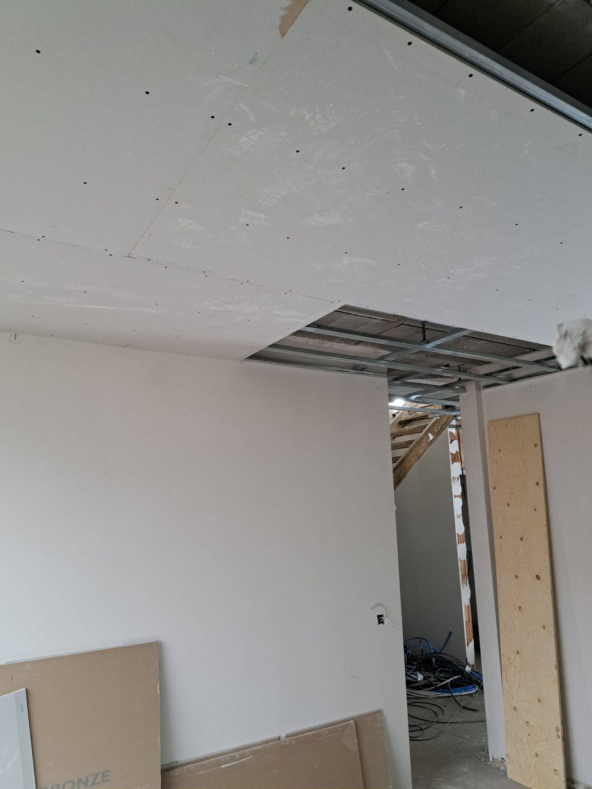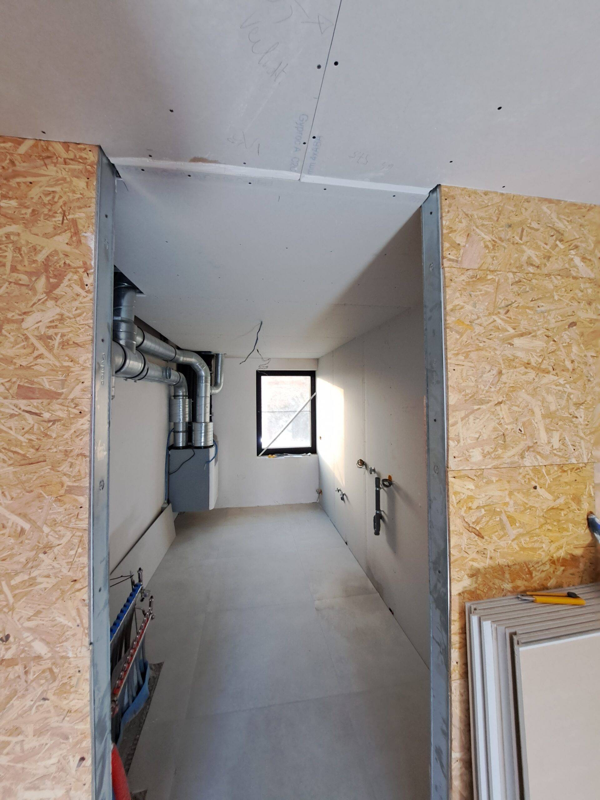 In deze woning te Wilsele mochten we scheidingswanden , voorzetwanden , afkastingen , gyprocplafonds en ingewerkte plinten voorzien.