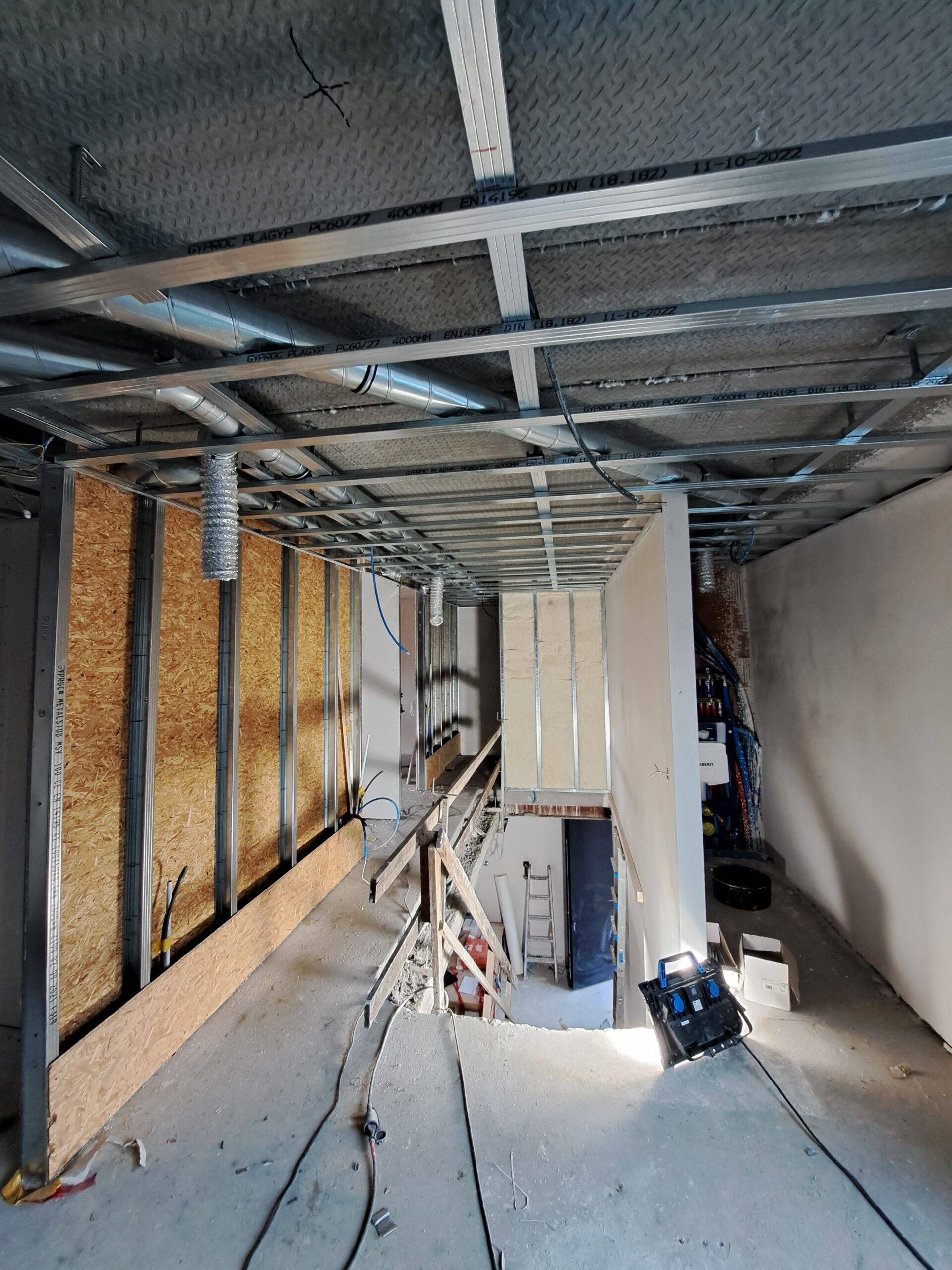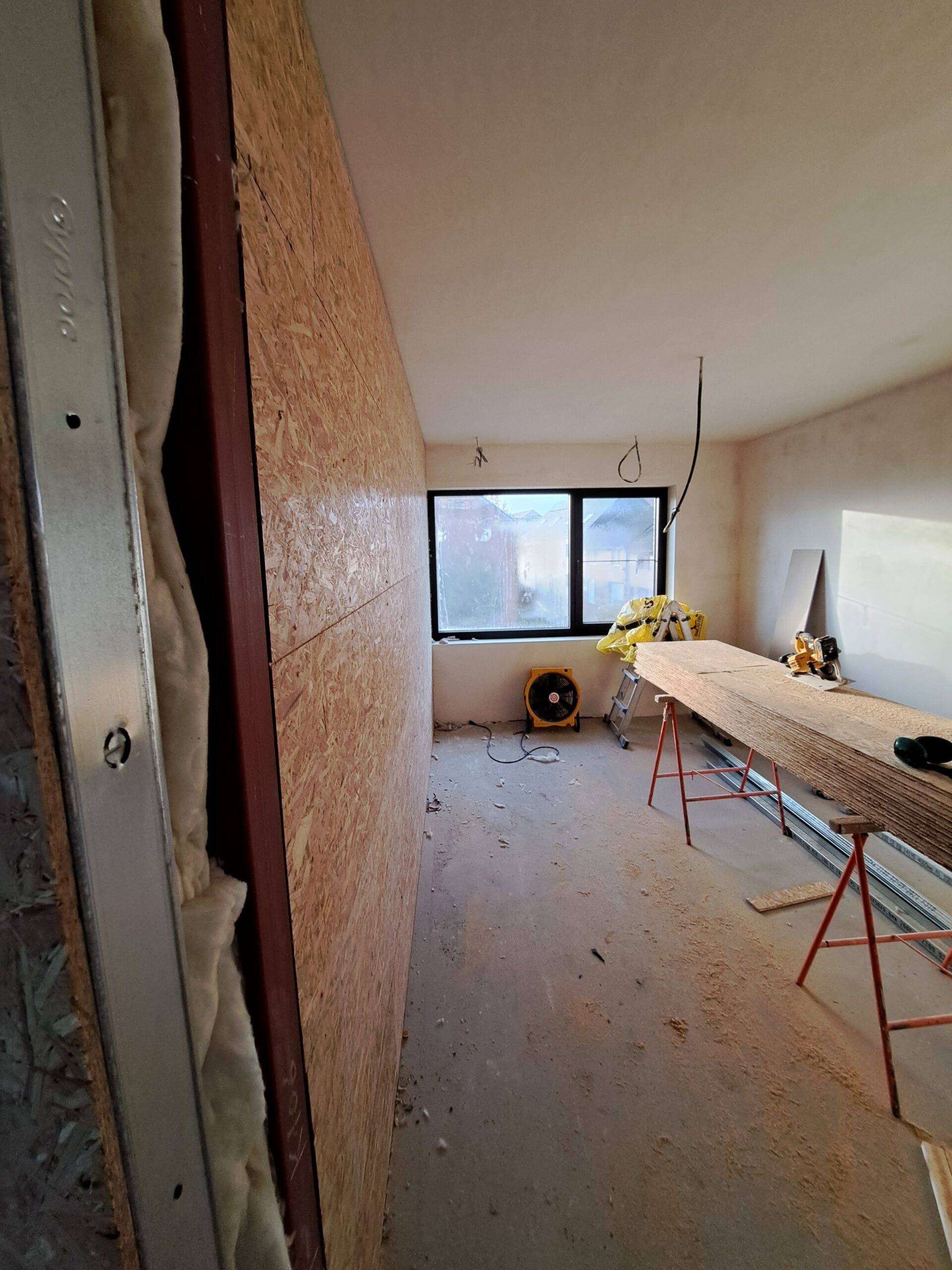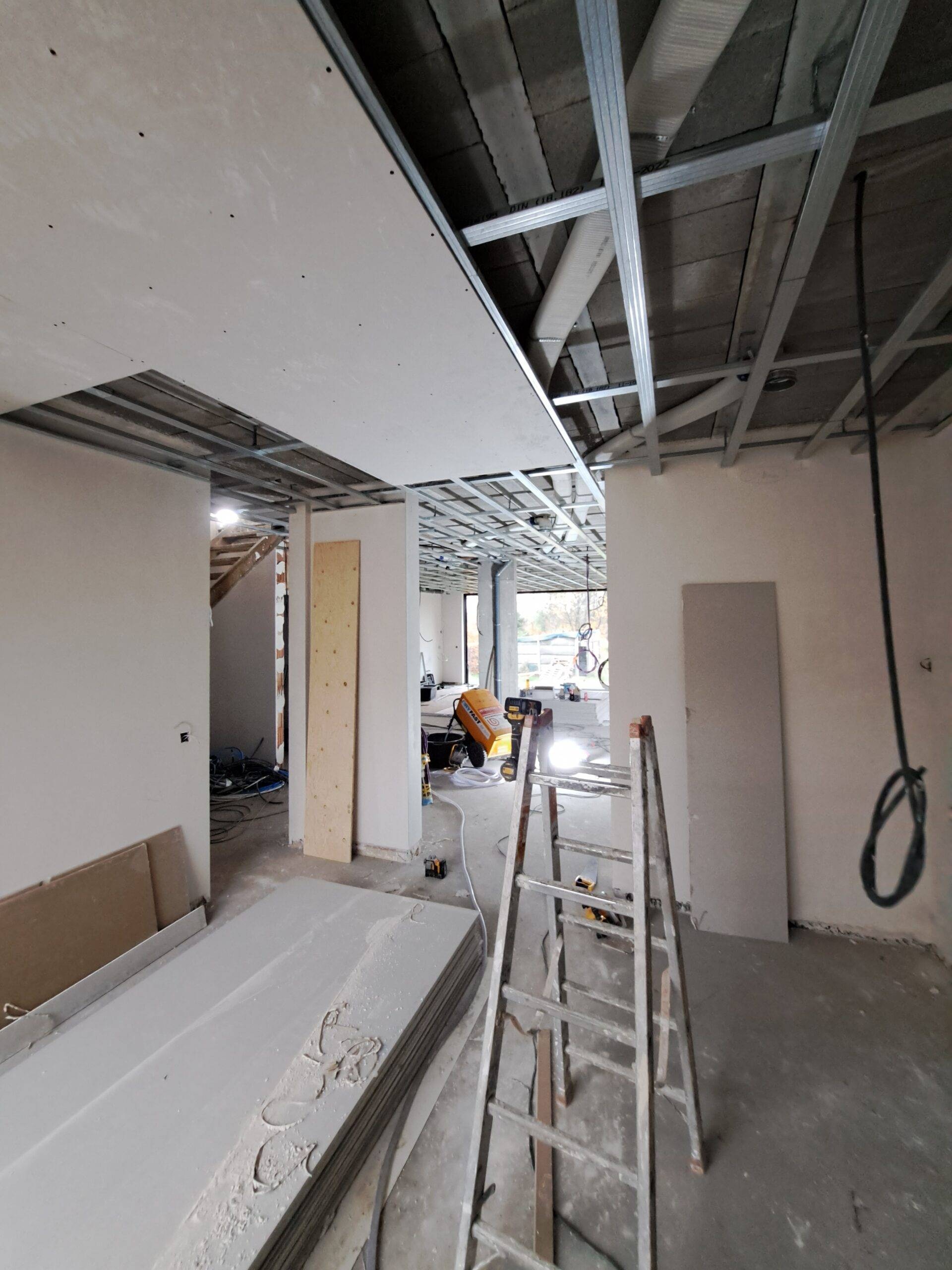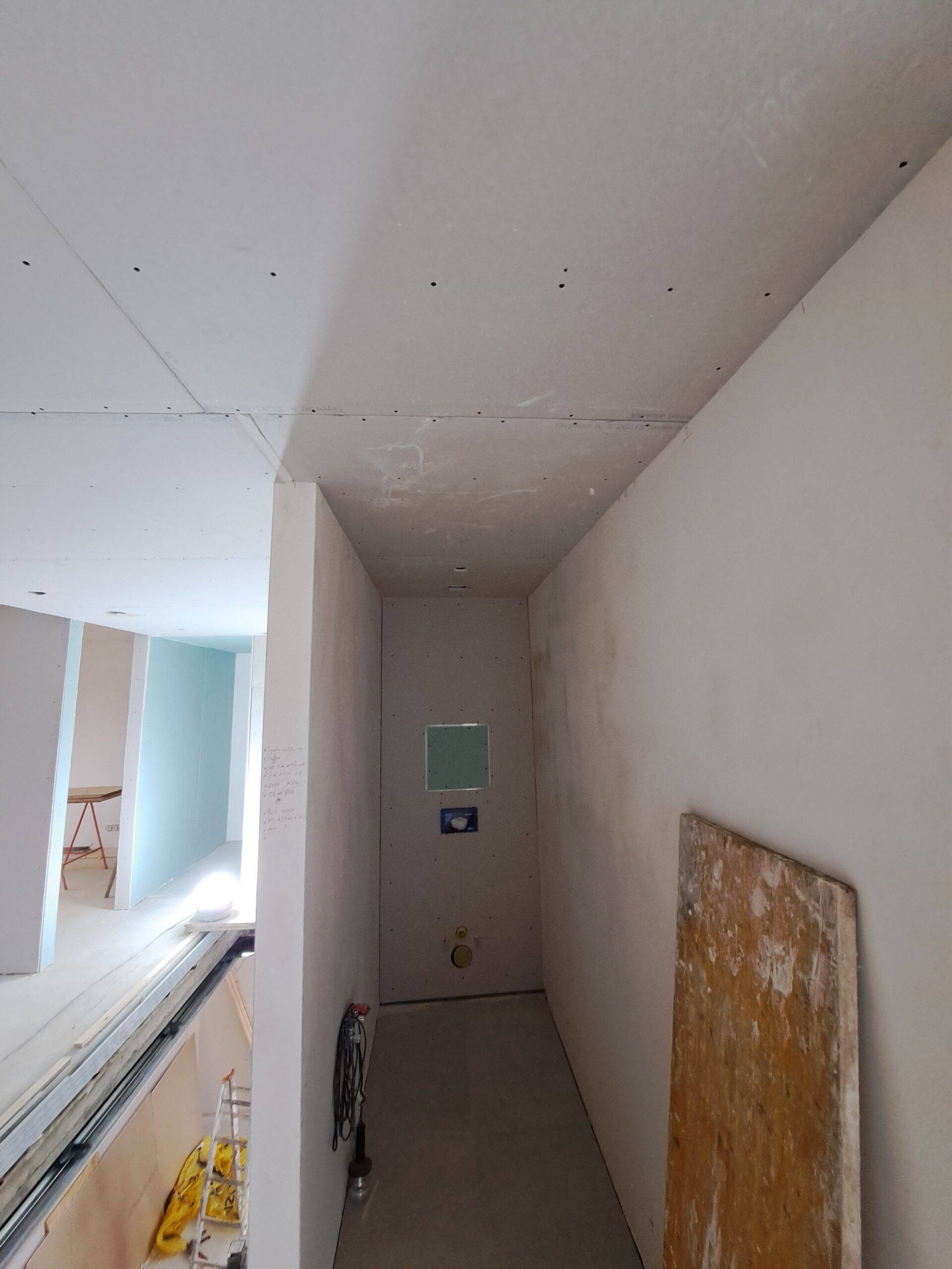 In deze woning te Wilsele mochten we scheidingswanden , voorzetwanden , afkastingen , gyprocplafonds en ingewerkte plinten voorzien.